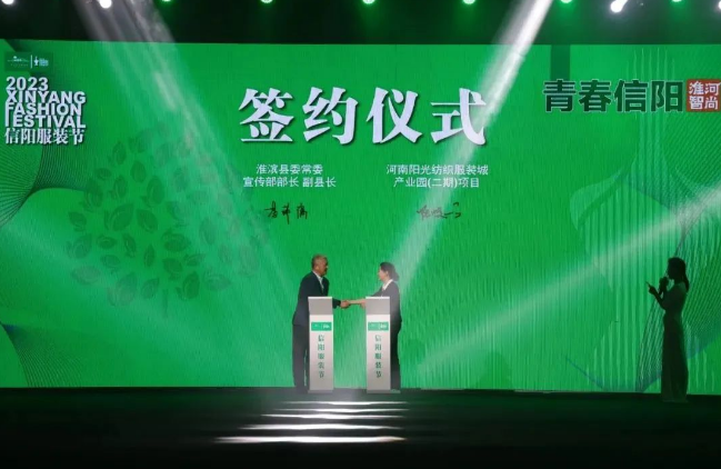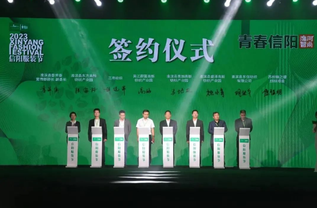 淮滨县与河南阳光纺织服装城产业园等8家企业代表现场签约。