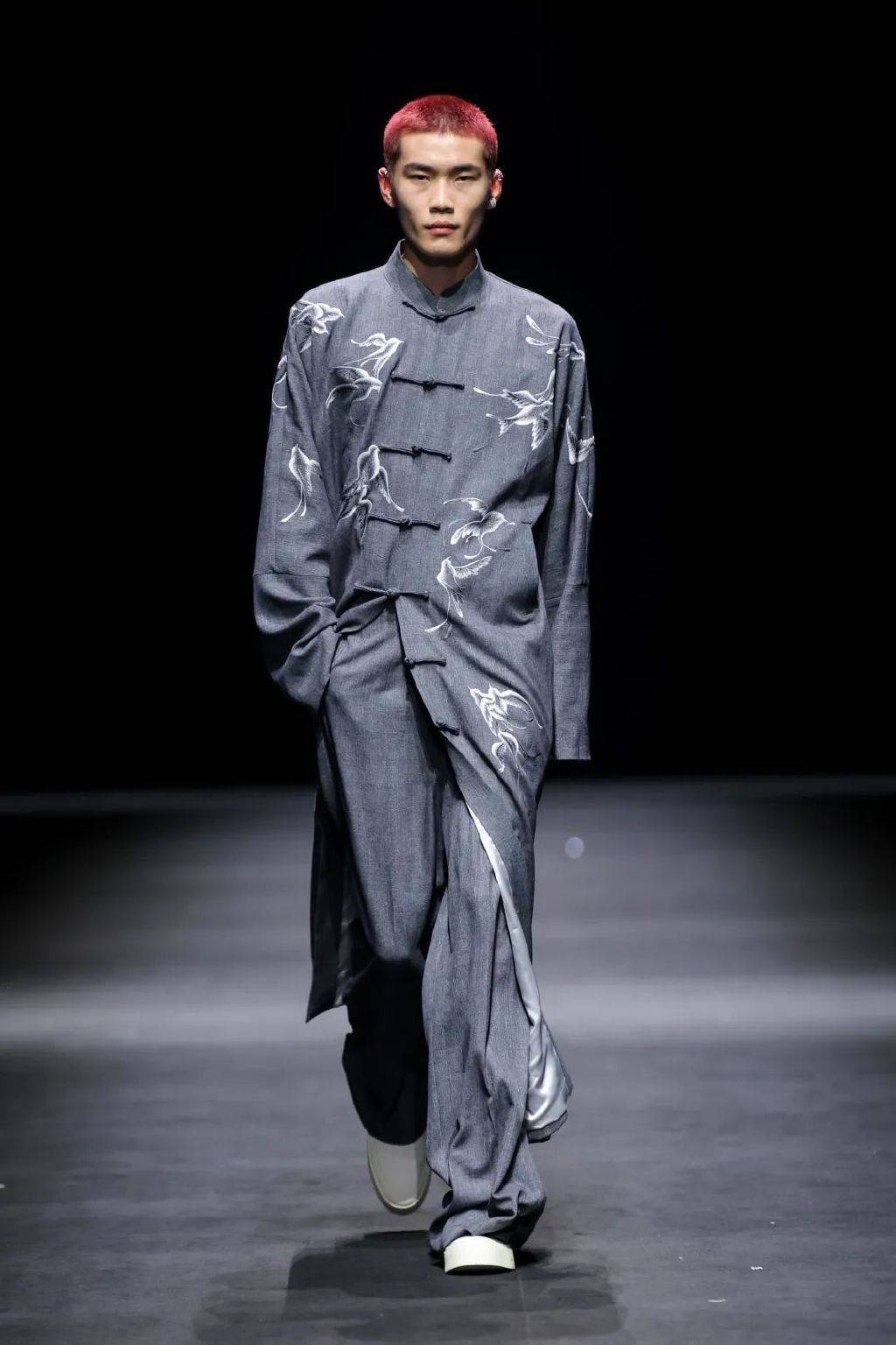 非遗面料香云纱在本季时装周大放异彩。传统香云纱由天然蚕丝面料经过莨薯、河泥等自然物质染色后长时晾晒而成。设计师金憓携手香云纱产地广东南沙榄核的知名香云纱品牌,设计出适用于各类人群和各种场景的香云纱时装。HUANG GANG突破性地将香云纱用于户外冲锋衣的设计,赋予香云纱未来科技感。SHUXUAN G.设计师选用植物印染的香云纱与水溶性可降解环保皮革,糅合现代极简松弛和东方浪漫诗意,秉持着品牌的设计初心。