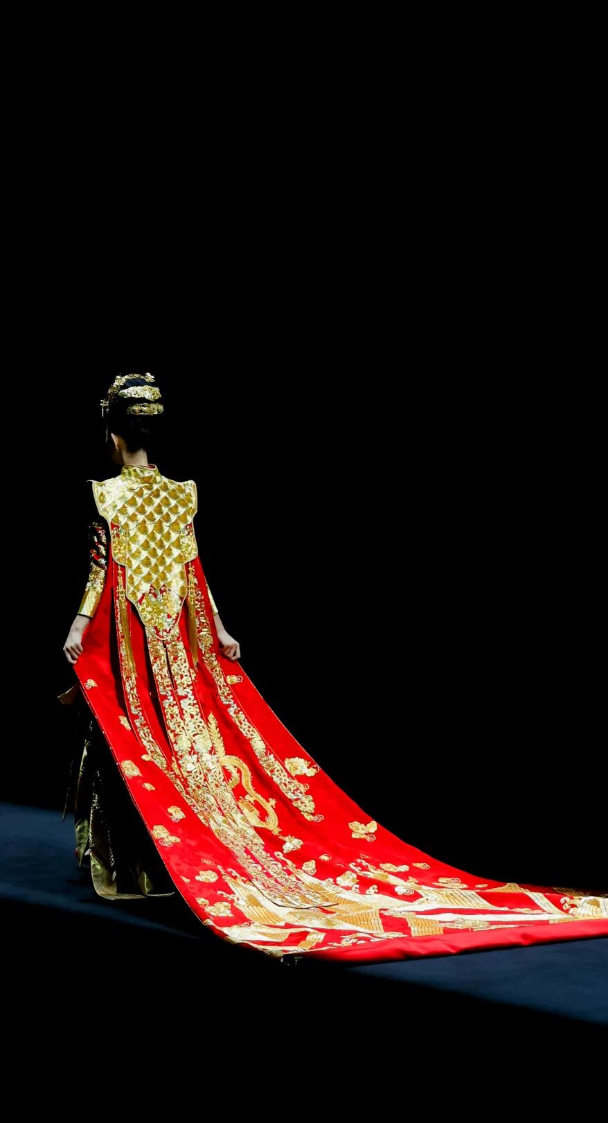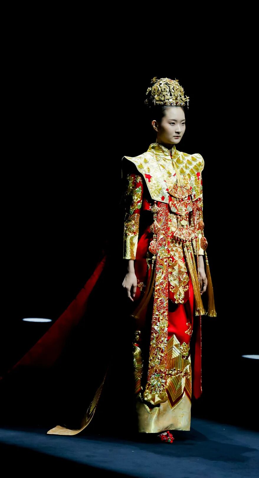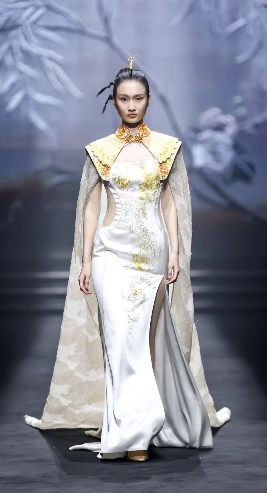 天玺的设计哲学在于“承古法而破形制”。设计师从自然中撷取花鸟相映的灵动生机,以非遗匠艺镌绣于衣;更将法式浪漫与现代松弛感注入东方轮廓,在鎏金穹顶下铺陈出跨越时空的雅致美学。天玺深知,每一件礼服都是“文明的织造”:历史纹样化为针脚,哲学意境裁为衣袂。它不仅连接着文化根源与家族的记忆,更承载着对未来的美好祈愿。这场大秀不仅树立了“仪式美与实用性兼具”的新标杆,更让世界看见中国礼服超越时空的隽永气质。