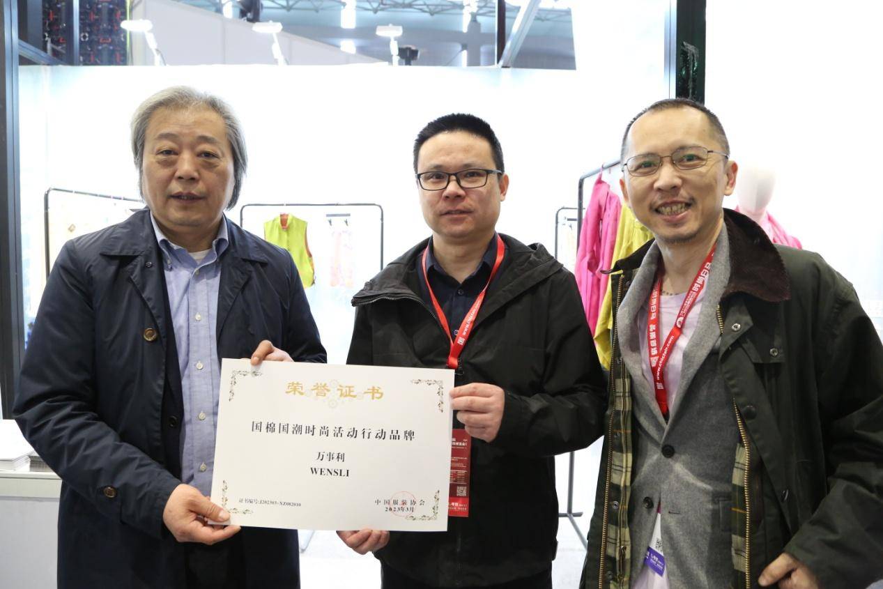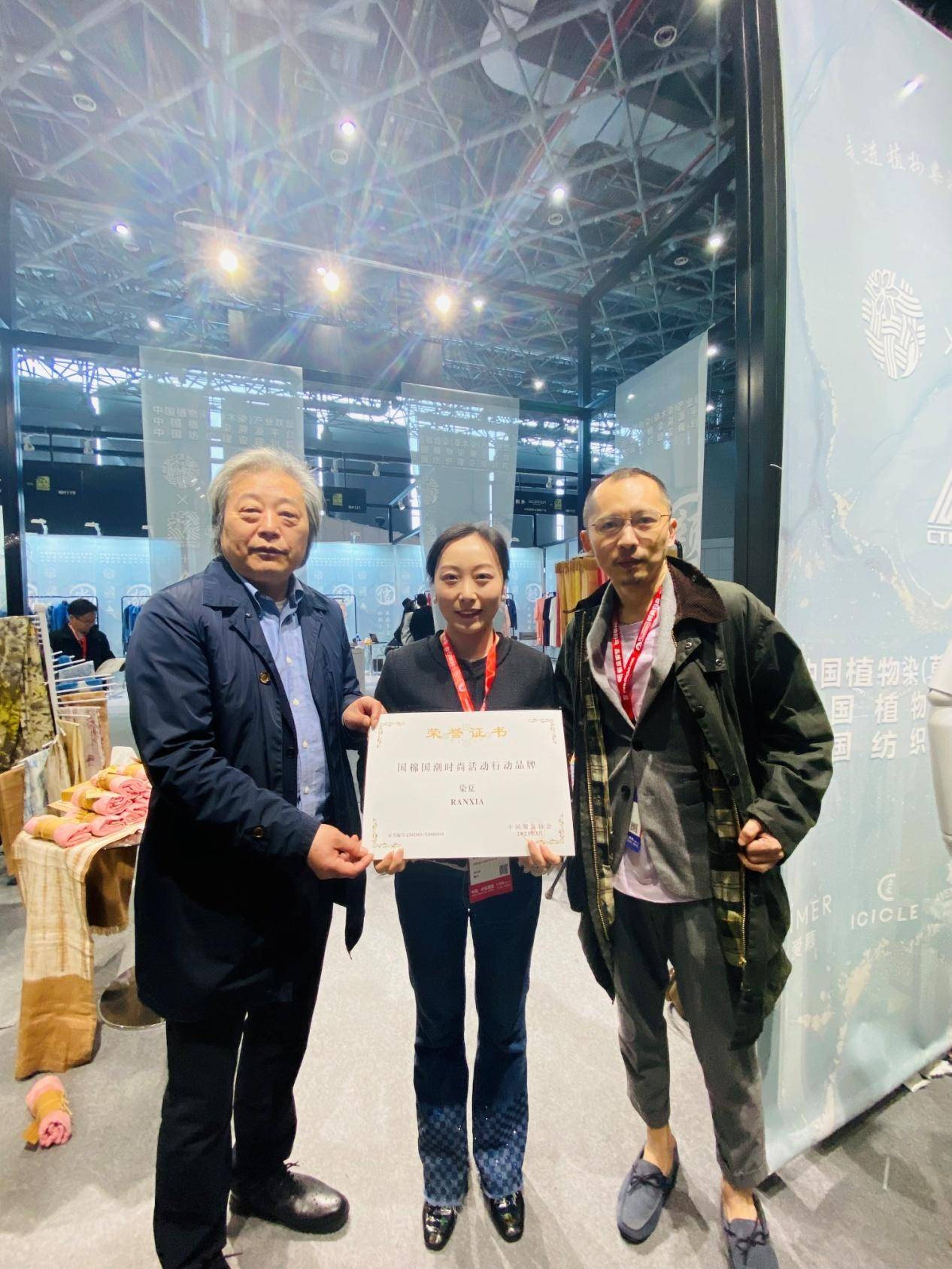 中国服装协会专职副会长、中国服装设计师协会副主席周一奇为爱慕、例外、之禾、万事利、染夏、闻 · 靛六个植物染溯源品牌颁发《国棉国潮时尚活动行动品牌》证书。